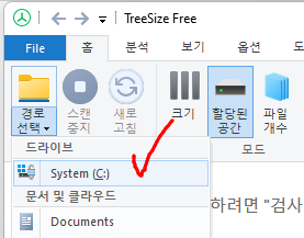3. 홈 - 경로선택 - 원하는 드라이브를 선택한다. (C: 드라이브의 경우 관리자권한이 필요하다)