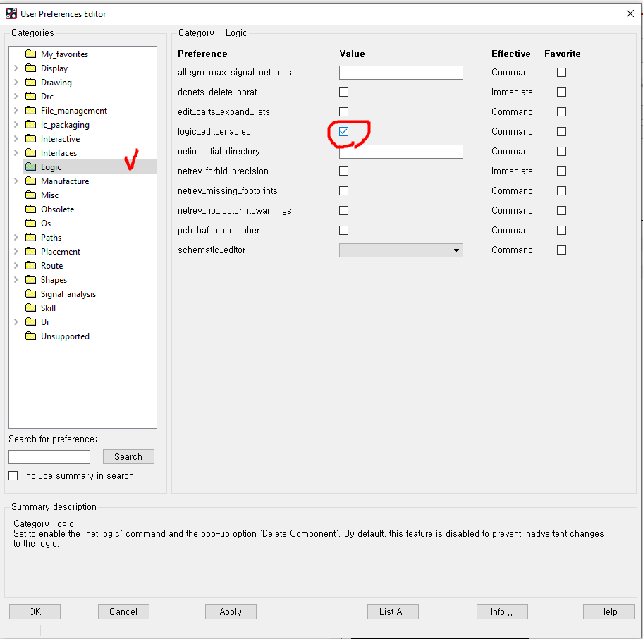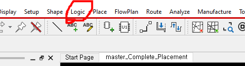 Allegro 라이센스를 활성화시키면 상단에 'Logic' 메뉴가 생긴다.