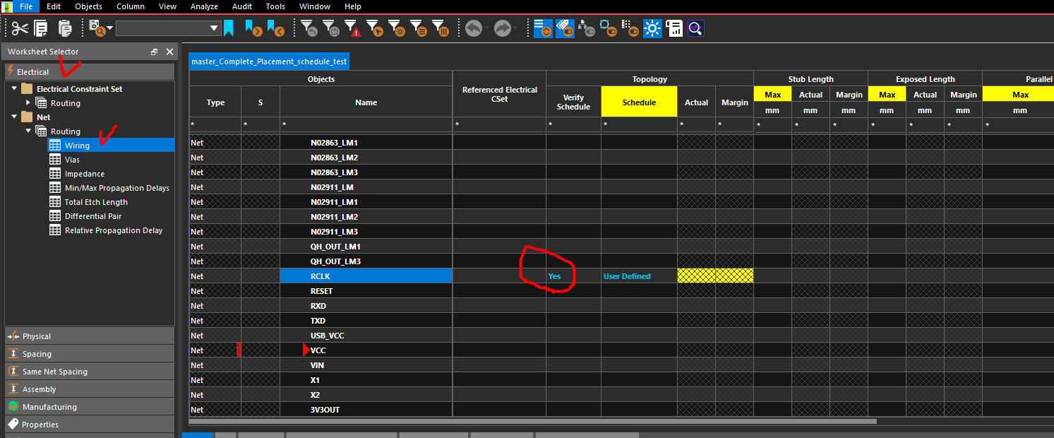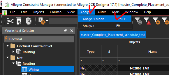 OrCAD 라이센스로는 이 메뉴가 보이지 않을 것이다. (OrCAD는 Edit - Net Schedule 메뉴)