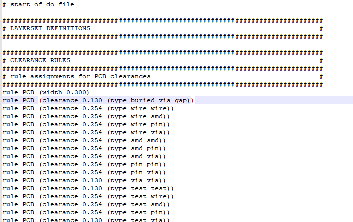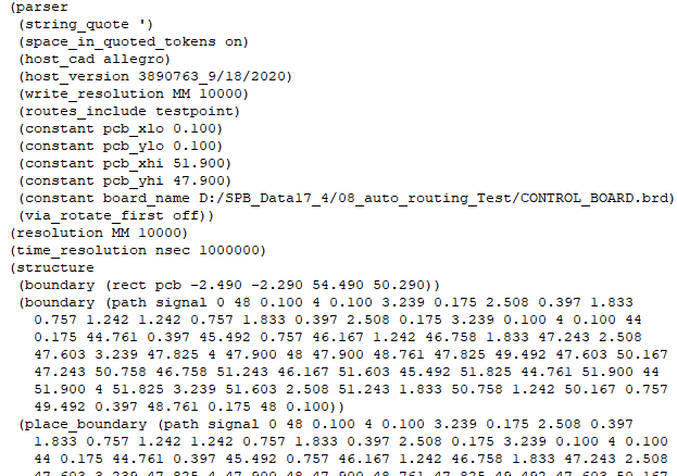 주로 Constraint Management에 관한 Rule을 담고 있는 .DO 파일도 생성한다. 이 파일은 오토라우팅시 CM Rule을 관장하므로, 파일을 수정하면 해당 룰이 변경된다. (이 파일을 import해서 Auto Routing을 할 수 있다.)