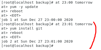 예를들어 내일 23시 00분에 yum update를 진행하라