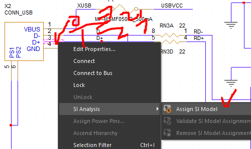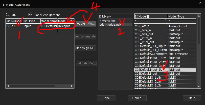 Sender핀만 클릭 - 마우스우클릭 - SI Analysis - Assign SI Model