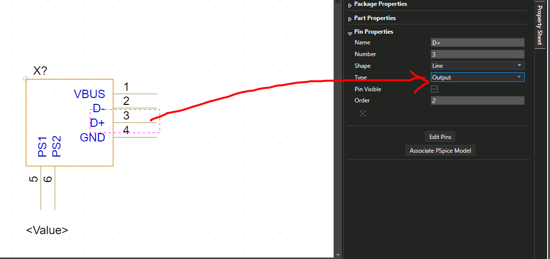 그러기 위해서 우선 모두 Part Edit를 통해 passive로 되어있는 핀 type을 output, input으로 바꿔준다.