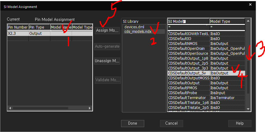2. 아래와 같은 순으로 X2의 3번핀에 SI Model을 부여