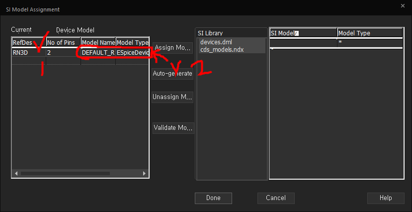 마우스우클릭 - SI Analysis - Assign SI Model
