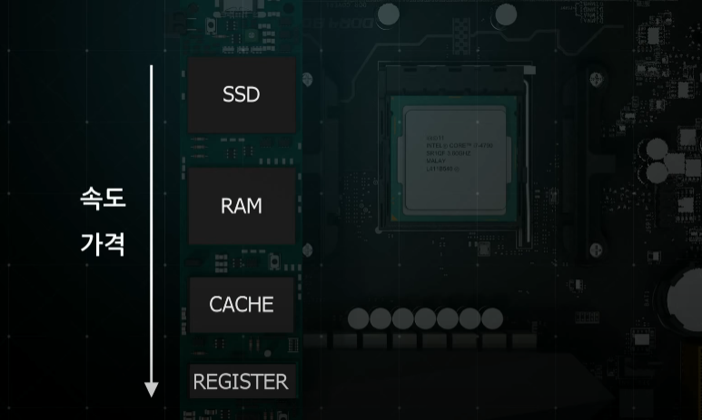 10. CPU 주변 기억장치의 구조. (Register, Cache memory, RAM, SSD 하드)