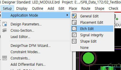3. Setup - Etch Edit 모드로 변경한다. (단축키로 F3번으로 가능하다, 또한 오른쪽 마우스 클릭으로도 가능하다)