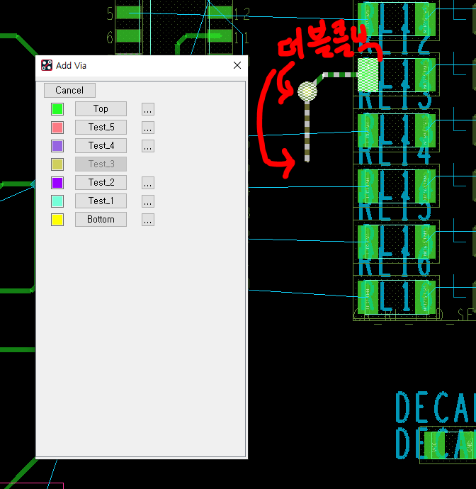 그러면 왼쪽의 Add Via의 창이 열리는데, 이쪽에서 바꾸고자 하는 via를 선택하면 된다.