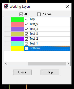 그럼 Working Layers라는 새로운 창이 생기는데, layer가 어떻게 설정되었는지 보여준다.