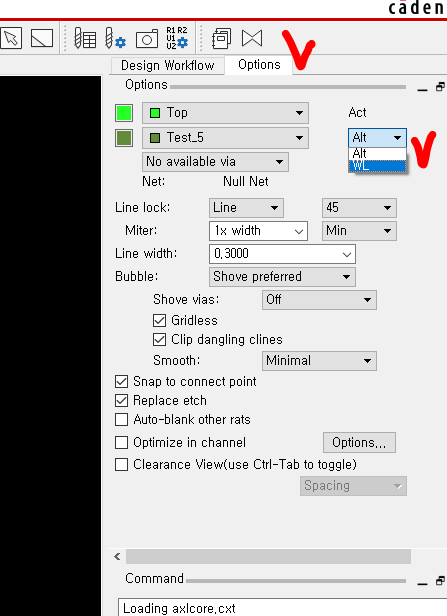 4. 그러면 Option 기능이 다음과 같이 활성화가 되는데, 이때 Act를 WL으로 바꿔준다.