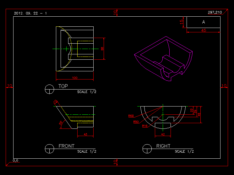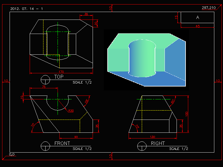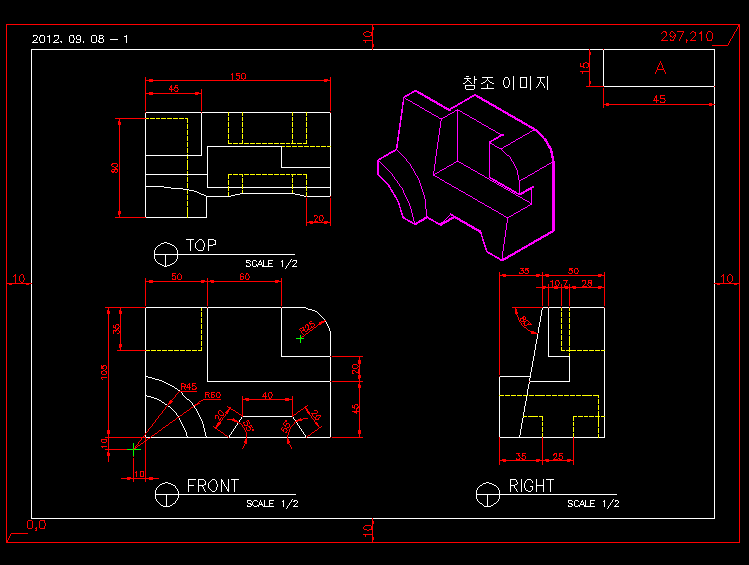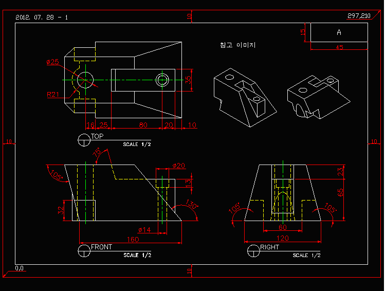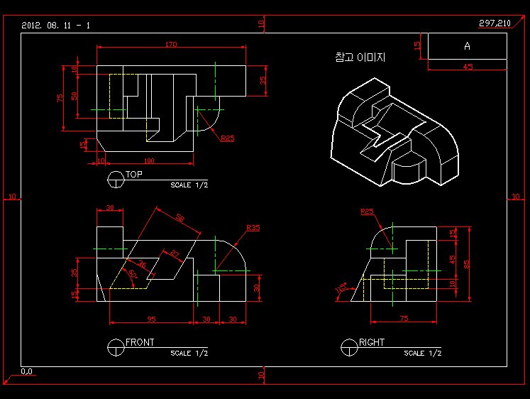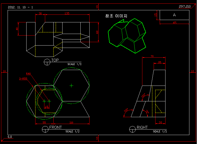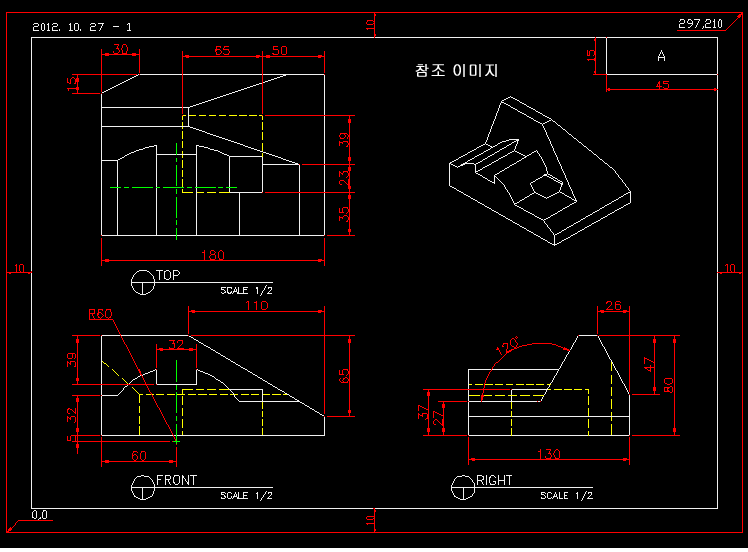 예제문제는 AutoCAD 2급 예제 문제이다.