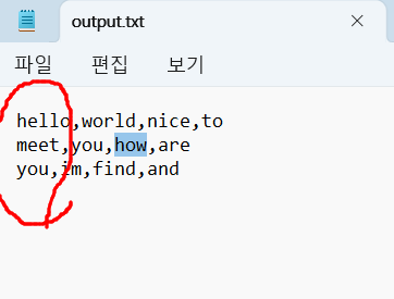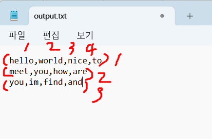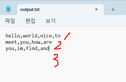 최종적으로 , 콤마를 기준으로 데이터만 출력하는 파일을 생성.