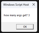 WScript.Echo "how many args get? " & objArgs.Count
