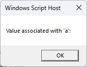 msgbox "Value associated with 'a':"