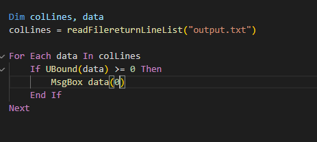 ' UBound(splitedLine) 배열의 크기가 4인지 확인 (0~4 까지 총 5개가 들어있는 배열)