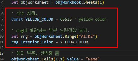 [Visual Basic] 비주얼베이직 스크립트 (VBScript), 엑셀 특정 영역에 색상 넣기 (0) | 2023.03.29 |