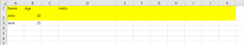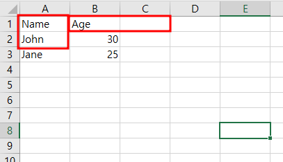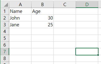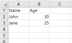 objWorksheet.Cells(1,2).Value = "Age"