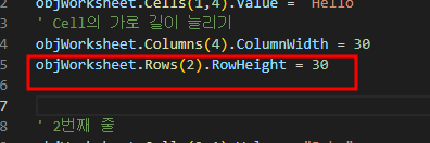 objWorksheet.Rows(2).RowHeight = 30