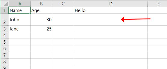 objWorksheet.Cells(1,4).Value = "Hello"