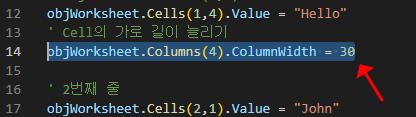 objWorksheet.Columns(4).ColumnWidth = 30