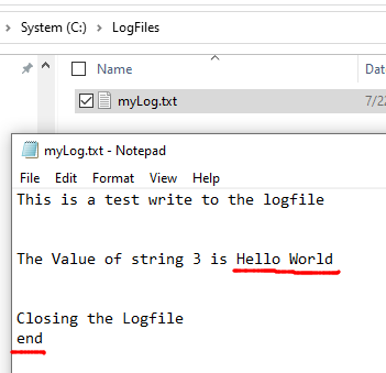 LogFile.Write("The Value of string 3 is " & str & vbCrLf)