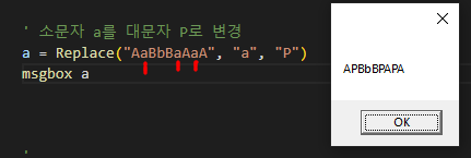 a = Replace("AaBbBaAaA", "a", "P", 3, -1)