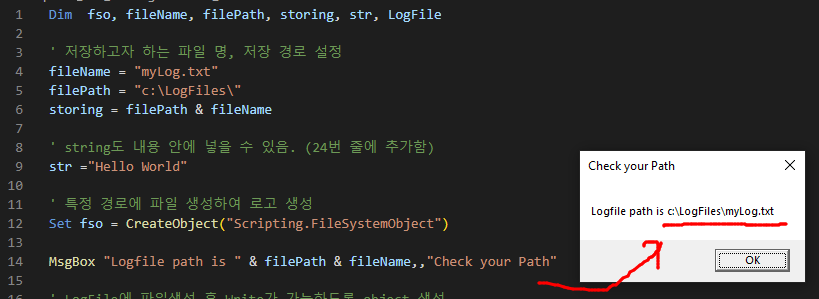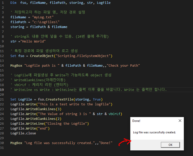 ' LogFile에 파일생성 후 Write가 가능하도록 object 생성