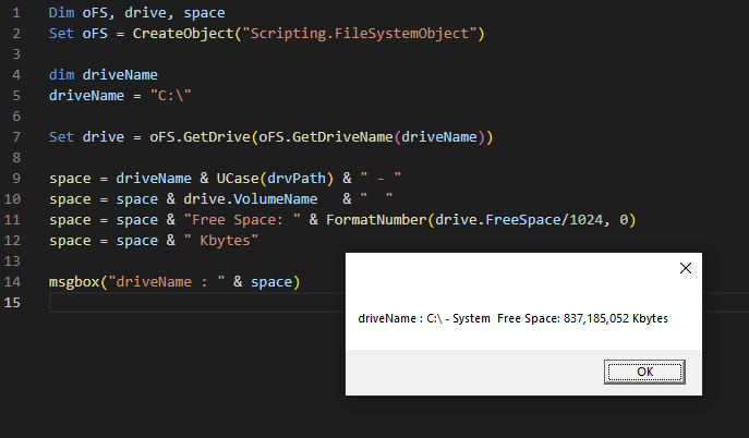 space = space & "Free Space: " & FormatNumber(drive.FreeSpace/1024, 0)