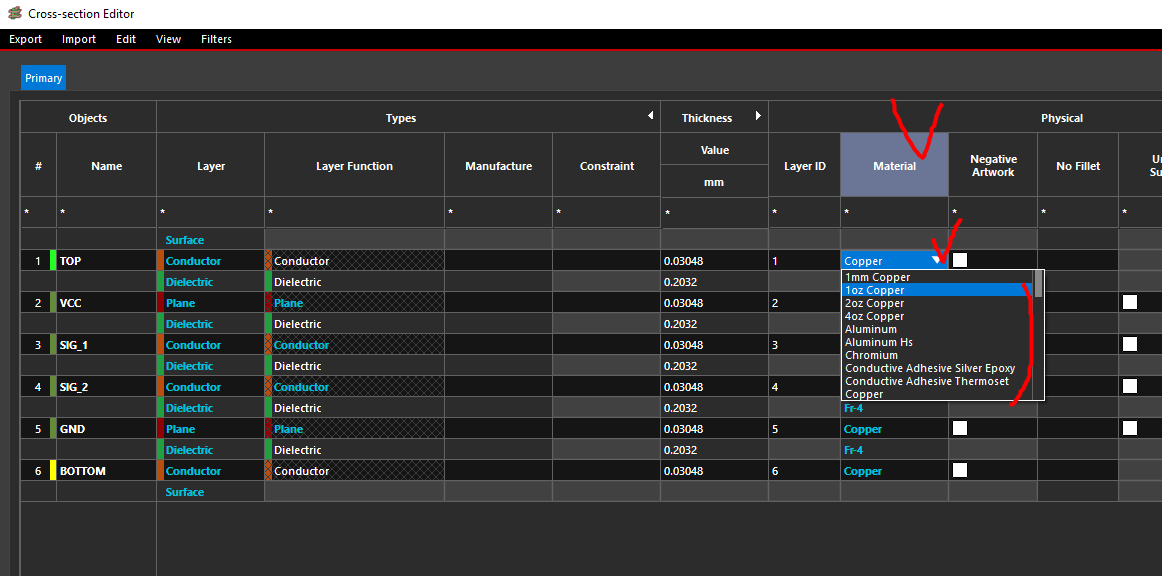 - Material 설정, oz 별 copper설정 가능, Gold, Silver 등등 다른 금속도 가능 (그에 맞게 계산됨)