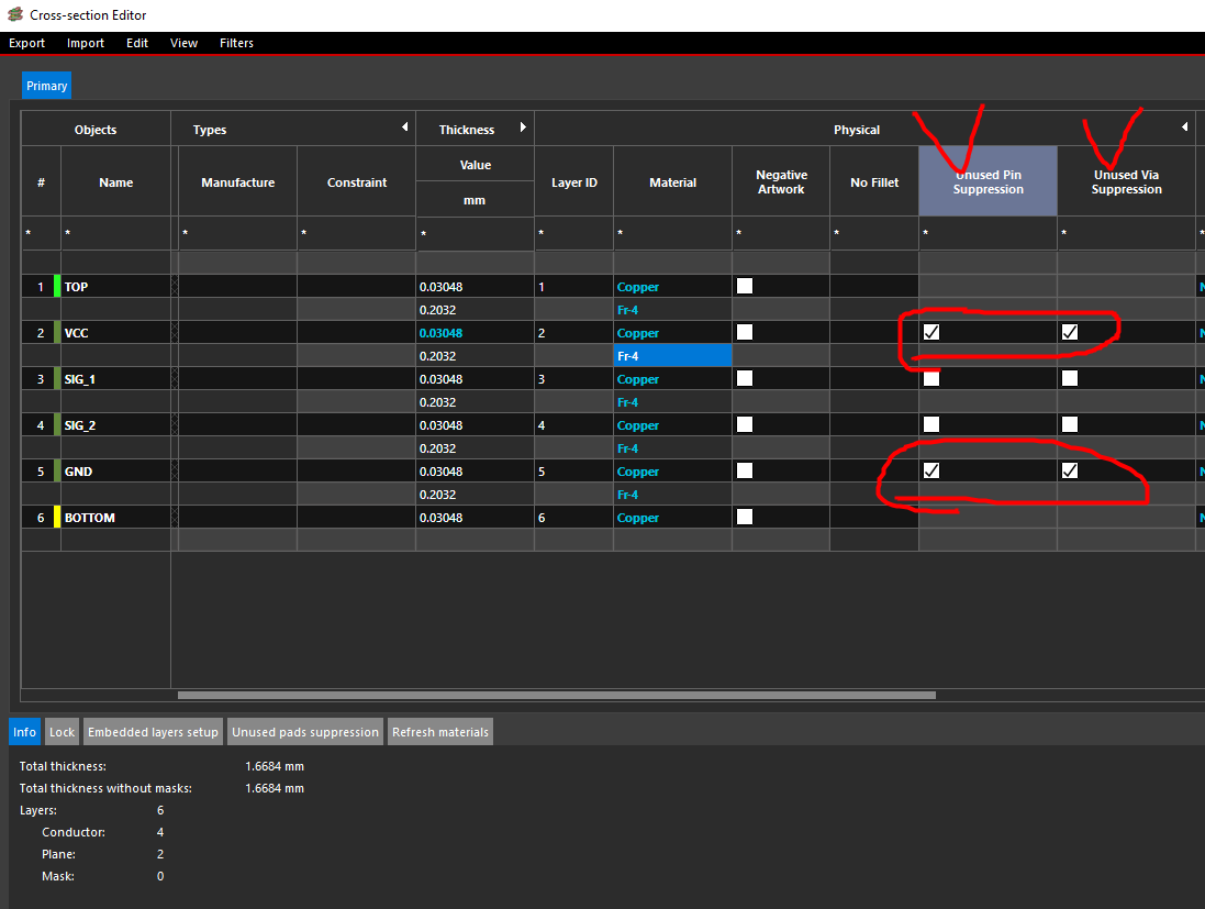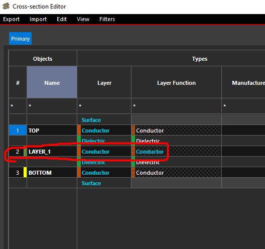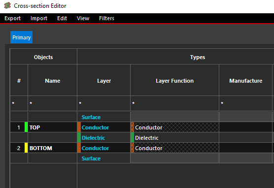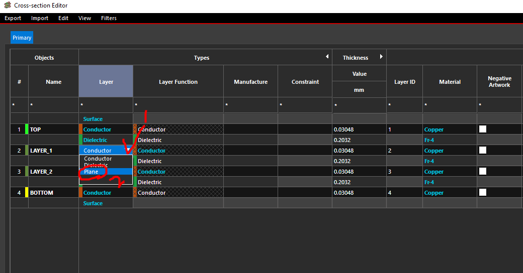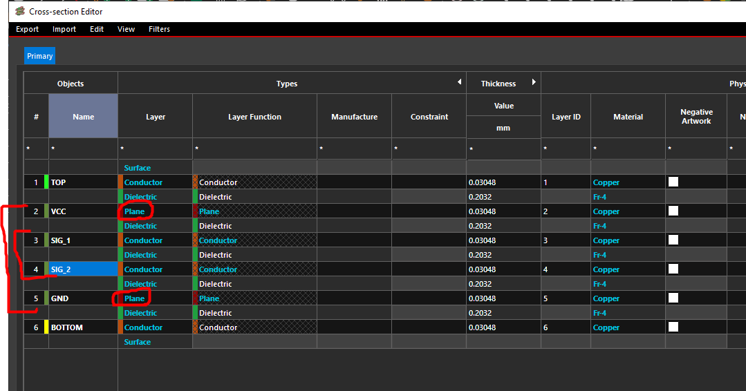 (예시) Copper Plane과 Conductor를 나눠서 아래와 같이 layer 설정가능